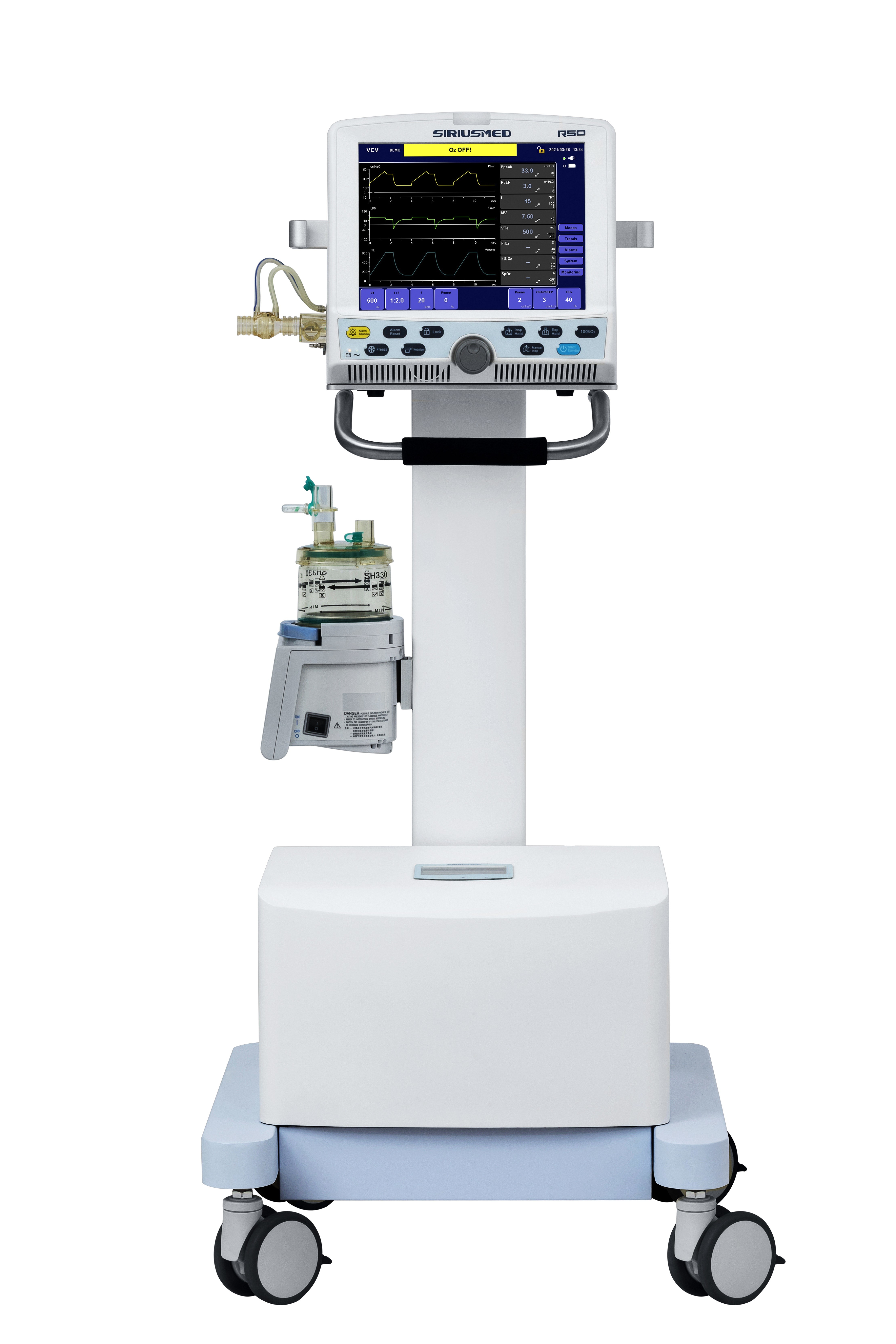 Tùy chọn: PRVC, SIMV-PRVC, NIV-PC, NIV-CPAP, DuoPhasic + PSV, APRV + PSV